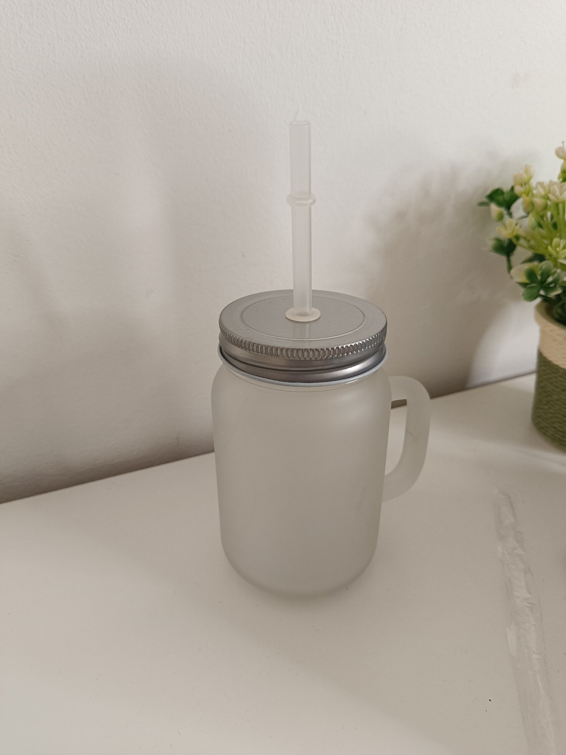 Elaborada con cristal de alta calidad, esta jarra presenta un diseño esmerilado que le otorga un toque sofisticado. Su forma clásica se complementa con una tapa y una pajita transparente,